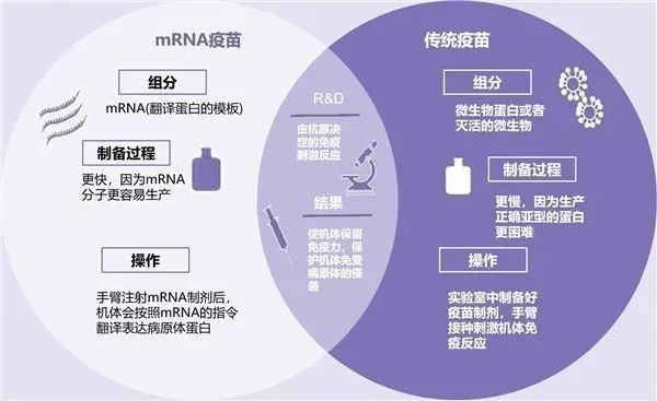 mRNA疫苗和传统疫苗最大的不同是,它是由化学方法制成的。传统的疫苗路线通常要在体外环境中培养病毒,依赖细胞扩增的过程,需要更长的制备时间;而mRNA疫苗只需要利用病毒的基因序列合成相关序列的mRNA,从而先期合成更快。