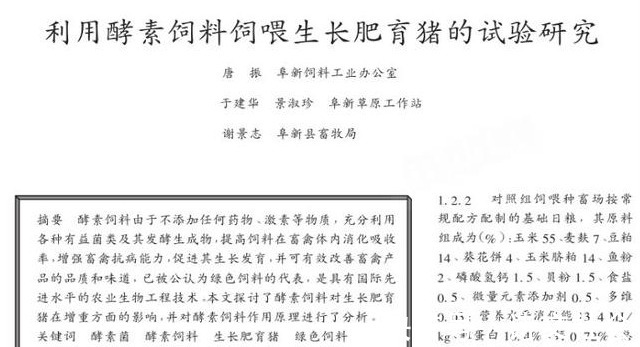 2001年5月,在《饲料研究》杂志上发表了一篇关于《利用酵素饲料饲喂生长肥育猪的试验研究》的文章:在实验中,将酶添加到猪饲料中,看看它与不添加酶的猪饲料有什么不同?